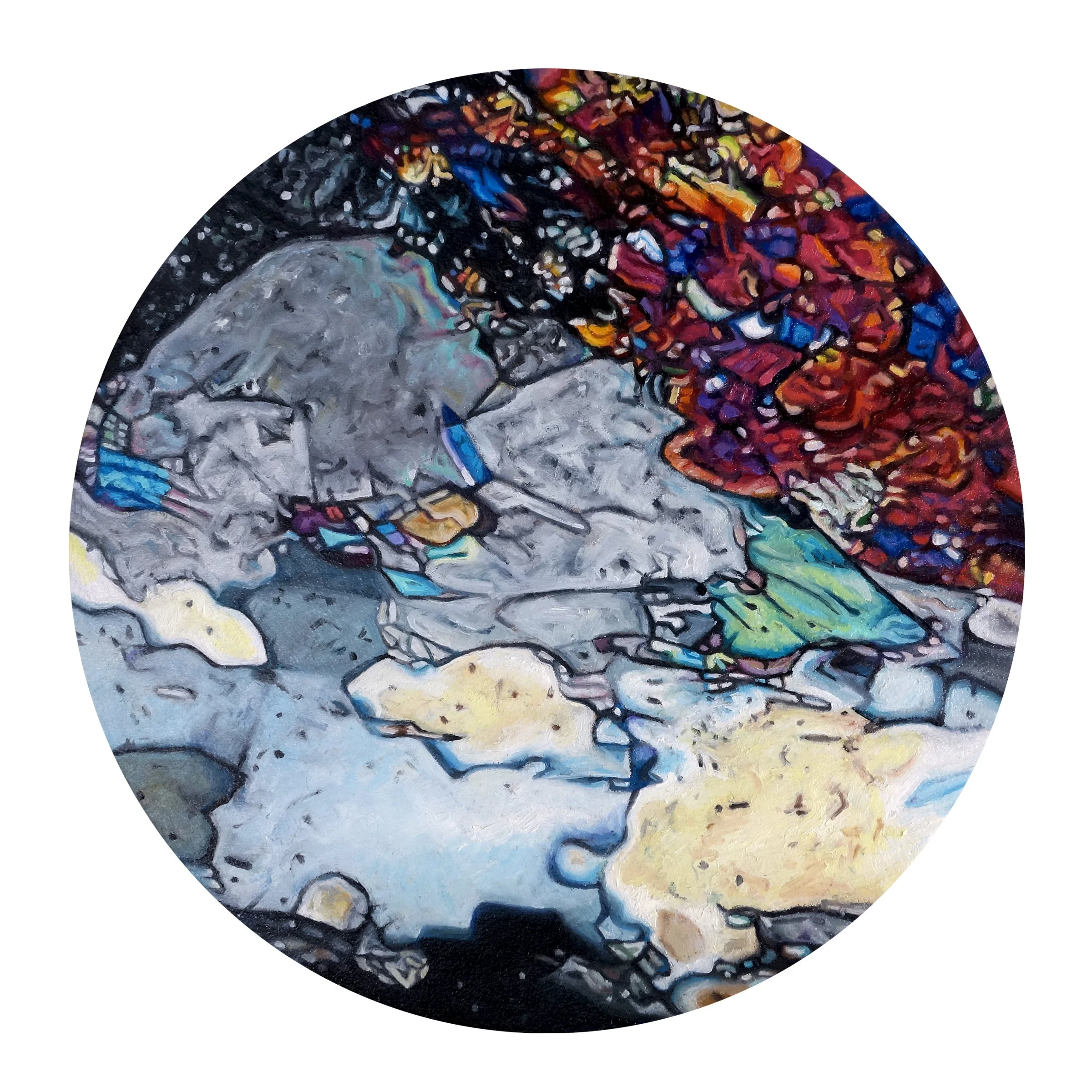 Dolomite, 8" diameter, oil on round, cradled panel, 2017